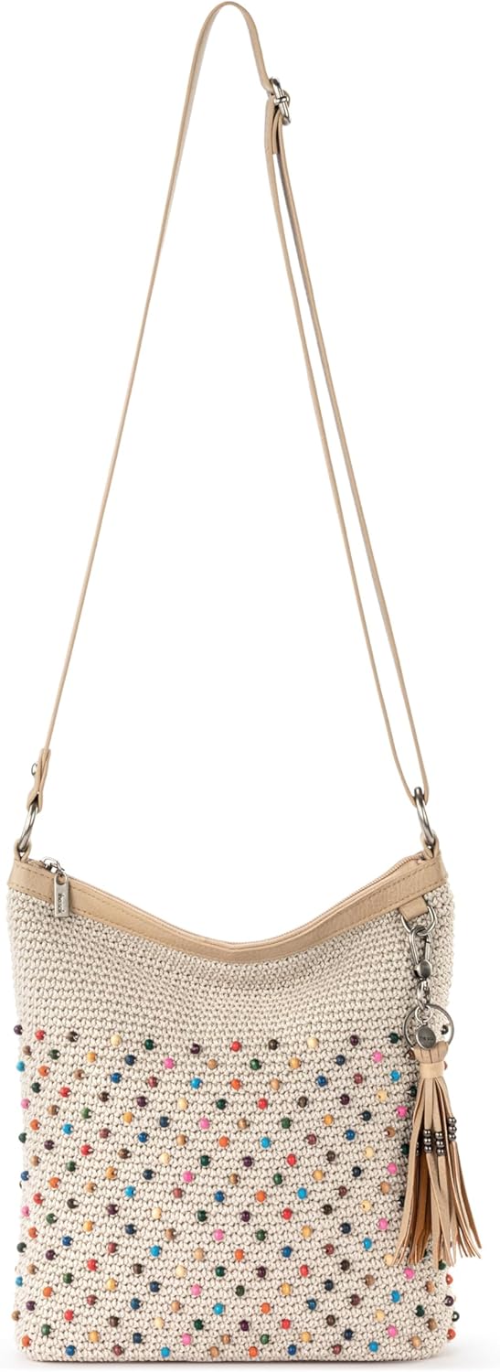 Please expect variations in color, as our yarn is made of recycled repreve and discrepancies are unavoidable. Due to the handmade techniques used by each artisan, variations may occur, making each bag completely one-of-a-kind Interior contains a back wall zipper pocket and two front wall multi-functional pockets Front and back zipper pockets Features handcrafted tassel with signature mandala & beads PETA-approved, Vegan Certified, REPREVE lining made from recycled materials including plastic bottles