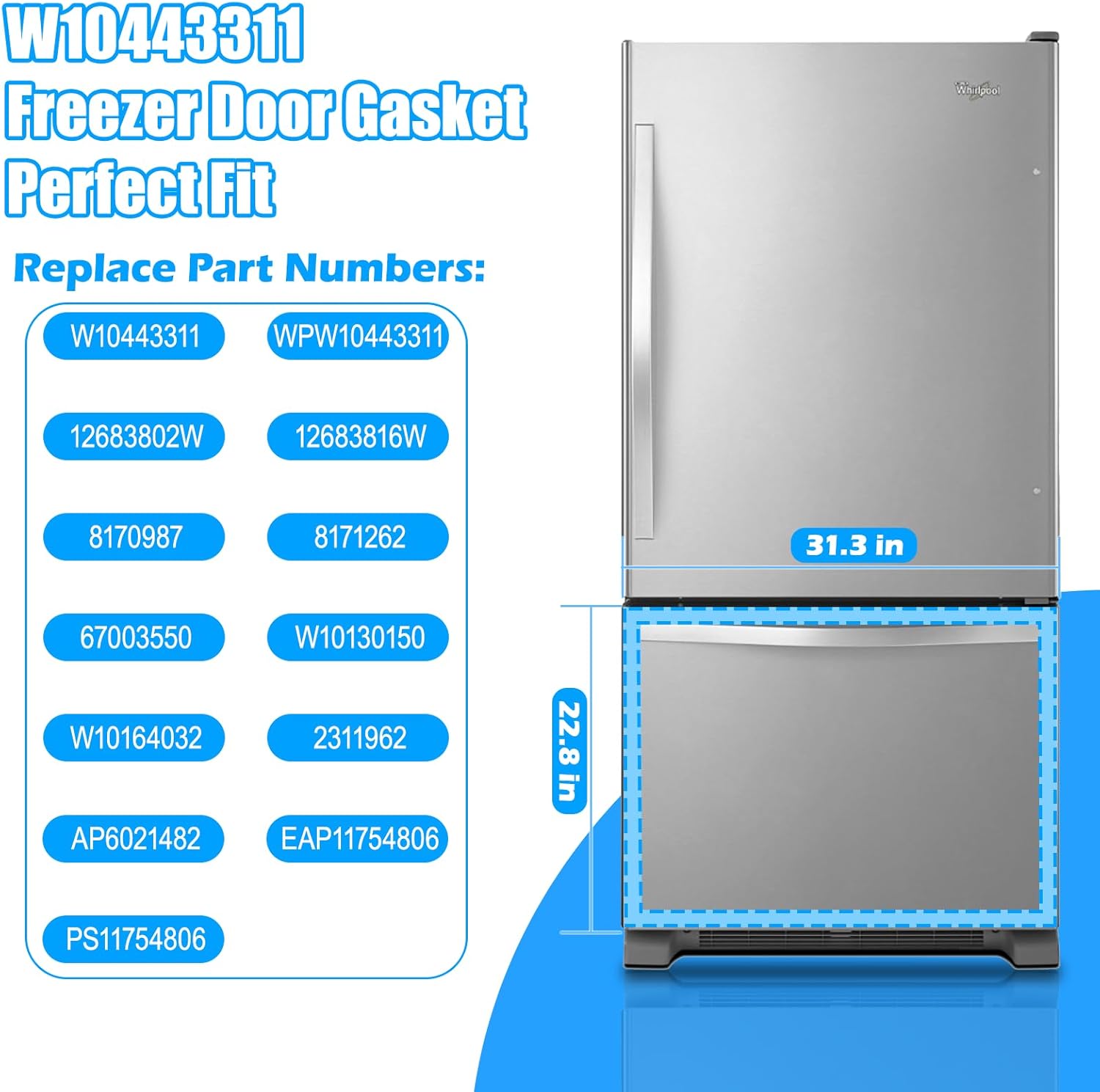 | Included Components | 1 X WPW10443311 whirlpool freezer door gasket, 10 X strong refrigerator magnets |