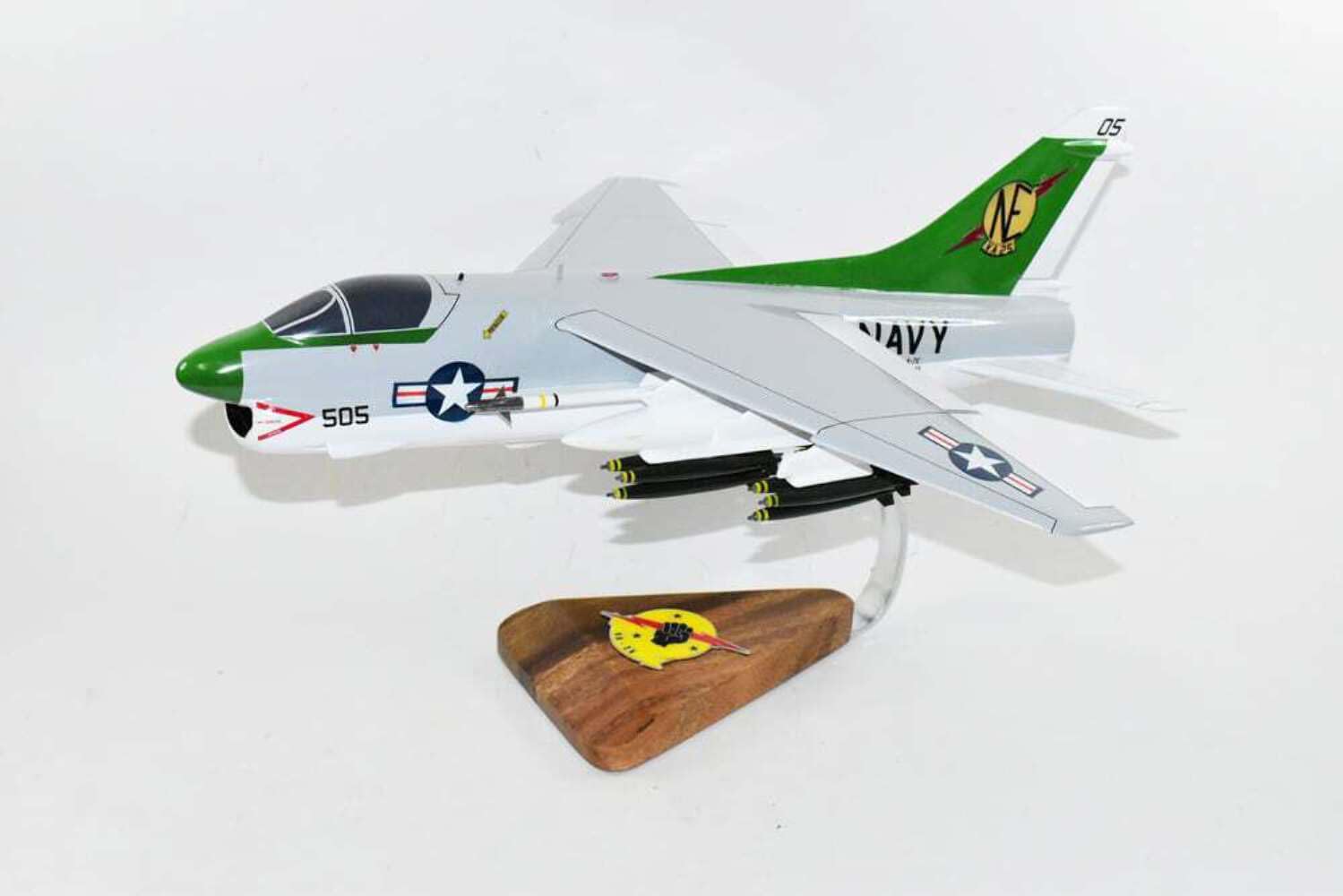 VA-25 Fist of the Fleet USS Ranger 1970 A-7E Corsair II ModelFly with the VA-25 Fist of the Fleet in this A-7E Corsair Model. Each model is carved from wood and hand painted to provide a unique piece you’ll love.Length – 18 inchesMade from MahoganyUS Veteran Owned BusinessAttack Squadron 25 (ATKRON 25) VA-25 ‘Fist of the Fleet’established as Torpedo Squadron 17 (VT-17) on January 1, 1943 VT-17 redesignated Attack Squadron 6B (VA-6B) on November 15, 1946 VA-6B redesignated Attack Squadron 65 (VA-65) on July 27, 1948 VA-65 redesignated Attack Squadron 25 (VA-25) on July 1, 1959 VA-25 redesignated Strike Fighter Squadron 25 (VFA-25) on July 1, 1983