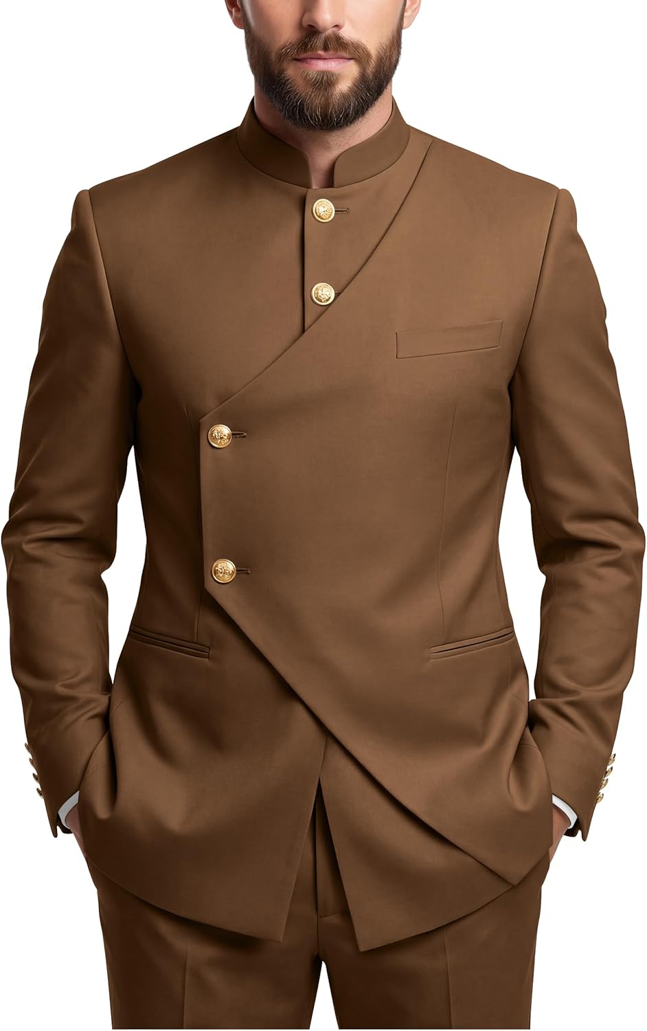 Item: Chinese Suit 2 Piece Safari Suits for Men Department :Mens Package include:2pc Jacket+Pant You can choose your likely goods here,including men's wedding suits,business suits,tuxedo, men's dress suits,men's vest,suit for wedding prom and other clothes and clothing accessories. Nice choice for wedding party,nightclub,dinner,prom party,daily life,business meeting,homecoming and back to school,any fashion forward parties,any holiday,work and other Formal Occasions,Suits can also be given as birthday gifts to your family or friends. We are committed to offer you the innovative and comfortable fabric product,and bring you the best service as we can. Note:1. The real color of the item may be slightly different from the pictures shown on website due to camera quality and monitor settings. Photos are taken in natural light with no flash. 2. Please allow slight deviation for the measurement data. 3. If there is no size that suits you,please send us your detail measurements as following: 1:shoulder=___'' 2:sleeve=___'' 3:chest=___'' 4:belly=___'' 5:waist=___'' 6:hip=___'' 7:clothes length=___'' 8:pants length=___'' 9:thigh=___'' 10:height =___'' 11:weight=___''