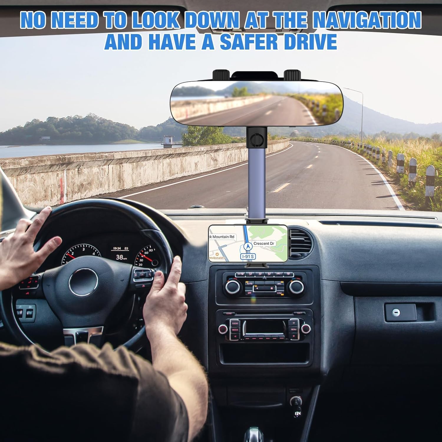 Enhance your driving experience with the WinDu Rear View Mirror Phone Holder, a versatile 2-in-1 solution for your car. This innovative device combines a panoramic 11.8" rearview mirror with a 360° adjustable phone holder, allowing you to have a clear view of the road behind while keeping your smartphone within easy reach. Crafted with high-definition optics, the mirror provides a wide and distortion-free view, ensuring maximum visibility and safety. The phone holder securely grips your iPhone, Android, or any other smartphone, keeping it stable and accessible for navigation, music, or hands-free calls. With its sleek blue design, the WinDu Rear View Mirror Phone Holder seamlessly integrates into your car's interior, adding both functionality and style. Suitable for SUVs, trucks, and all types of vehicles, this practical accessory is a must-have for modern drivers.